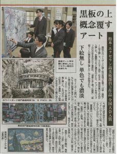2019年5月28日 / 最終更新日時 : 2019年5月28日 エクセラン 美術科・美術部 新聞掲載 5月28日(火) 5/28付の信濃毎日新聞に先日受賞した「日学・黒板アート甲子園2019」の記事が掲載されました。 コメントを残す コメントをキャンセルコメントを投稿するにはログインしてください。