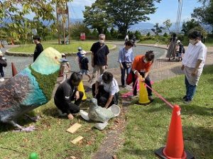 美術科彫刻工芸専攻の生徒たちが、愛媛県で行われた「えひめ笑顔のこども芸術祭ひめっこアートフェスティバル」に大型の野外彫刻を展示しました。