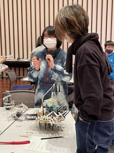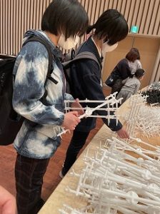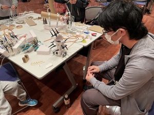 この展覧会の中で本校美術科の生徒たちが、「宇宙基地を作ろう」という高校生以下を対象としたワークショップの補助として参加しました。