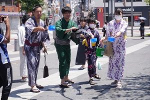 生活文化コースの3年生は自分たちで制作したゆかたを着て、松本の町を練り歩きました。