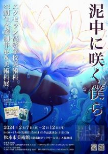 2024年1月24日 / 最終更新日時 : 2024年1月24日 エクセラン 美術科・美術部 美術科 23期生卒業制作展・美術科展 本校美術科が、松本市美術館にて23期生卒業制作展、美術科展を開催致します。 ぜひお越しください。 期 日: 2024年 2月7日(土)~2月12日(月)。 場 所: 松本市美術館 2階市民ギャラリーA・B (長野県松本市中央4-2-22) 時 間: 9:00~17:00 (最終日15:00) ★入場料無料 コメントを残す コメントをキャンセルコメントを投稿するにはログインしてください。