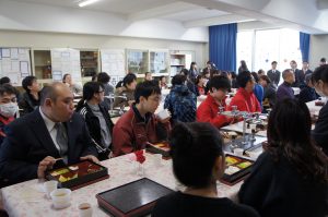 普通科3年生生活文化コースの生徒が、2年間学んだ学習成果を本校にて発表しました。保育、介護、被服は展示発表、食物においては、生徒がメニューを考案し、洋風・和風の弁当を作り、保護者、教員、お世話になった方々をお招きし食事会を開催しました。