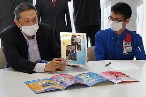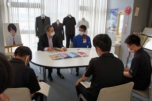 (2)エネオスウィング。昨年2名が入社し、うち松本で働いている1名が訪問してくれました。そしてサービス業に希望している後輩に対し、高校時代に身につけておいた方がよいことなどを話してくれました。