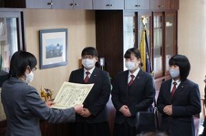 2020年11月26日 / 最終更新日時 : 2020年11月27日 エクセラン 福祉科・ボランティア部 第一回長野県介護技術コンテスト受賞 本校福祉科生徒が参加した「第一回長野県介護技術コンテスト」にて、優秀賞を受賞しました。先日、主催者である長野福祉士会が来校され、表彰状を授与しました。 コメントを残す コメントをキャンセルコメントを投稿するにはログインしてください。
