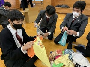 2020年12月10日 / 最終更新日時 : 2020年12月10日 エクセラン 未分類 ”届けよう、服のチカラ”プロジェクト 参加 11月30日(月) 普通科国際理解コース2年生がUNIQLO主催”届けよう、服のチカラ”プロジェクトに参加しました。 全校と近隣の小学校に協力を呼びかけ、およそ5000着の子ども服が集まり、仕分け作業を行いました。 子ども服は主催元から難民キャンプの子どもたちへ贈られます。 コメントを残す コメントをキャンセルコメントを投稿するにはログインしてください。