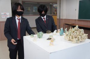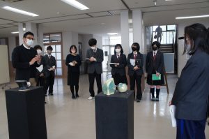 2021年4月20日 / 最終更新日時 : 2021年4月20日 エクセラン 美術科・美術部 美術科 外部講師授業 4月16日(月) 美術科2・3年生の彫刻工芸専攻の授業の一環とし、「陶を素材とした自由造形〇△⊡」をテーマに萩原碌山美術館学芸員である濱田氏をお迎えし、生徒、濱田氏の作品の鑑賞会を行いました。 コメントを残す コメントをキャンセルコメントを投稿するにはログインしてください。
