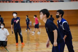 生徒たちはチームの仲間と声を掛け合いながらボールをつなぐ姿がありました。