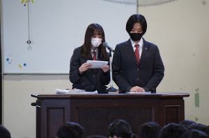 2021年12月16日 / 最終更新日時 : 2021年12月16日 エクセラン 未分類 生徒総会 12月15日(水) 本日生徒総会が行われ、今年度の委員会・部活動の活動報告、文化祭の会計報告が行われました。これで3年生の役員は任期が終了し、新役員がこれから引き継いでいくことになります。 コメントを残す コメントをキャンセルコメントを投稿するにはログインしてください。