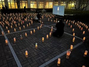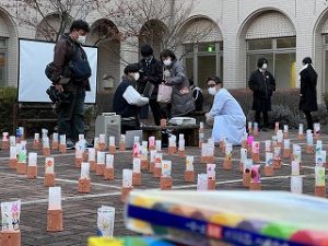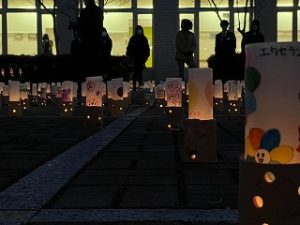 本校の生徒にも協力を投げかけ、イラストが描かれたおおよそ500個の灯篭にLEDの灯りがともり、病院のみなさんに喜んでもらうことができました。