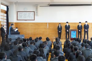 始業式の中では、校長先生より目標に向けて一歩踏み出すことの大切さについてや実際にどのようにすれば行動に移すことができるかなど具体的な話がありました。