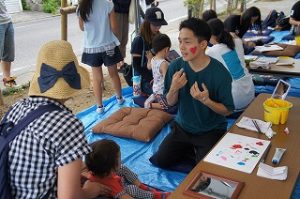 7月16日(日)に、松本市の花時計公園・蔵シック館の2会場で本校美術部15名がフェイスペイントのワークショップを行いました。この企画は「まつもと街なか大道芸」というイベント内で実施しました。当日は約300人のお客様へペイントを施しました。どの部員もとても楽しんでおり、お客様からも大好評でした。
