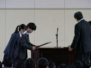 2022年12月26日 / 最終更新日時 : 2022年12月26日 エクセラン 未分類 2学期 終業式 12月26日(月) 本日で2学期終業式を行いました。 式の中では10月に行われた強歩大会の入賞者や書道部、美術部で受賞した生徒の表彰をしました。 コメントを残す コメントをキャンセルコメントを投稿するにはログインしてください。