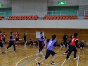 ドッジボール、卓球、バドミントンバスケットボールに分かれて競技しました。