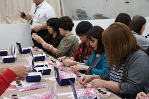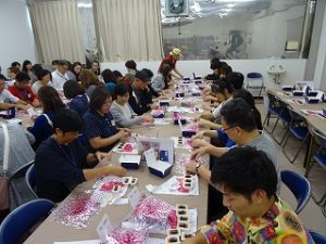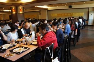 石和温泉でバイキングを楽しみ、旅の最後は桔梗屋本社工場での信玄餅の包装体験。